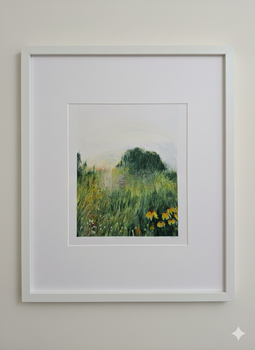 There are no rigid horizon lines. Sky, vegetation, and ground merge into a continuum where everything coexists without hierarchy. No element needs to impose itself upon another to exist fully. It is a visual ecology of interdependence; each layer sustains the next without suffocating it.